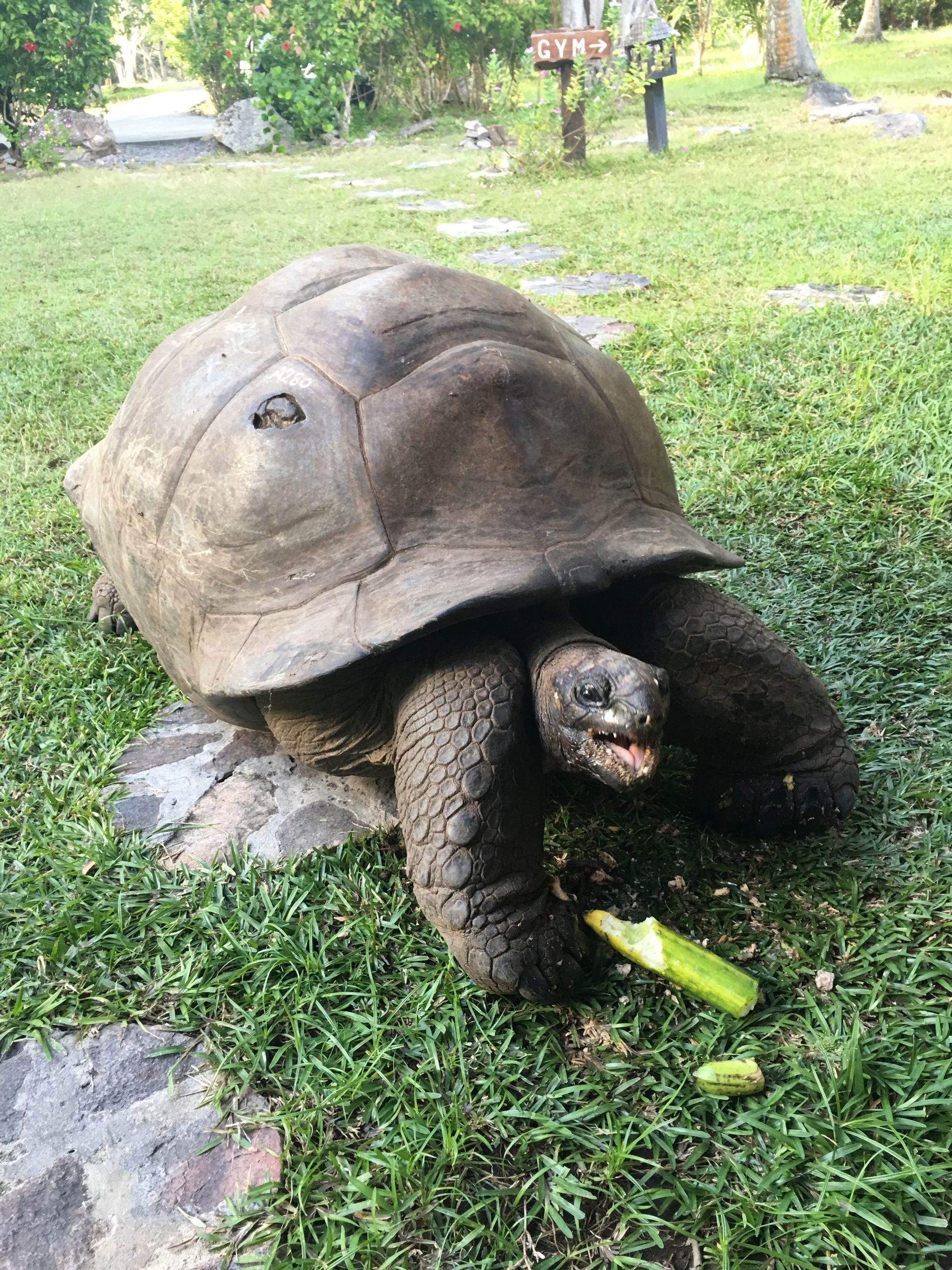 The island is home to over 2,000 free-roaming Aldabra giant tortoises, as well as rare bird species like the Seychelles magpie-robin, once close to extinction. Guests are invited not only to witness this thriving ecosystem but to participate in it, whether releasing baby turtles into the sea, helping in coral restoration efforts, or touring the island’s organic plantation and hydroponic gardens.
