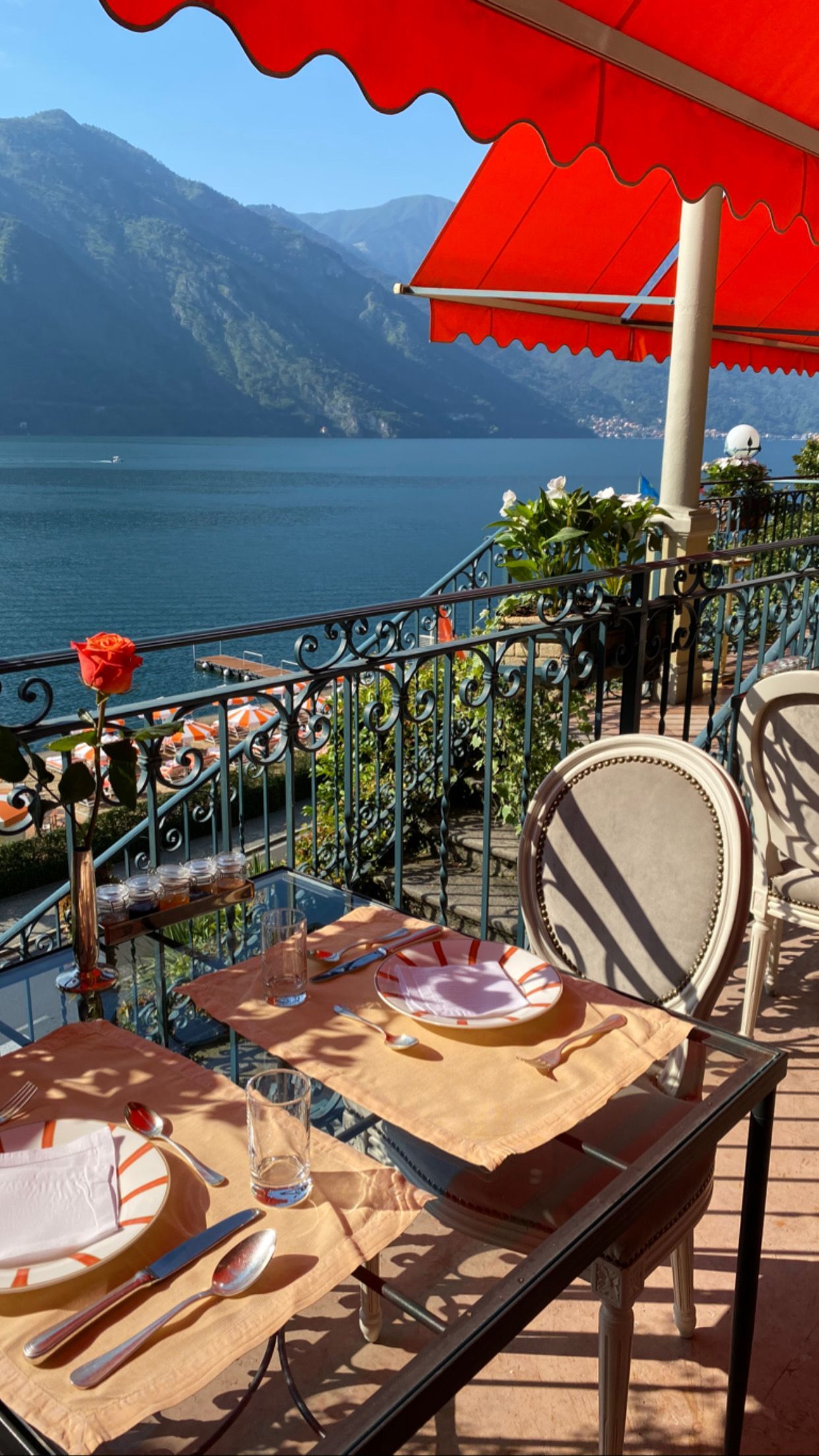 Among the many beautiful spaces in the hotel, our favourite was undoubtedly the Sala Musica, a radiant room adorned with candy-coloured sofas and flooded with natural light, embodying the joyful spirit of the Grand Hotel Tremezzo.